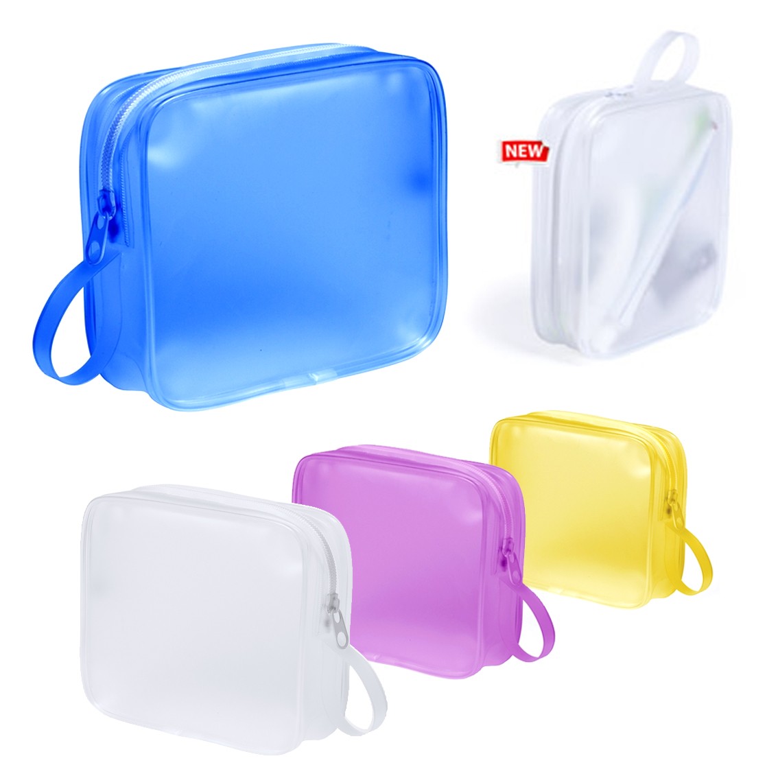 Neceser multiusos de alta calidad en resistente material EVA translúcido en vivos colores. Con cierre de cremallera en color blanco y asa de transporte a juego.