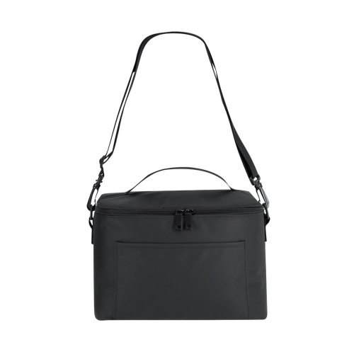 Nevera fabricada en PU con interior de PEVA. Cuenta con detalles a juego, base reforzada y compartimento principal con cierre de cremallera. Incluye bolsillo interior, bolsillo exterior, asa superior y cinta bandolera ajustable para un transporte cómodo y práctico.