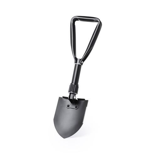 Práctica pala para nieve plegable. En resistente acero al carbono, con sierra lateral y presentada en una resistente funda con cierre de velcro. Plegable. Funda Poliéster