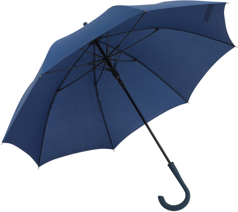 Ø103 cm. Aprox. Bastón metálico, varillas en fibra de vidrio, puntas metálicas y mango curvo de plástico. APERTURA AUTOMÁTICA. Con cierre de velcro.