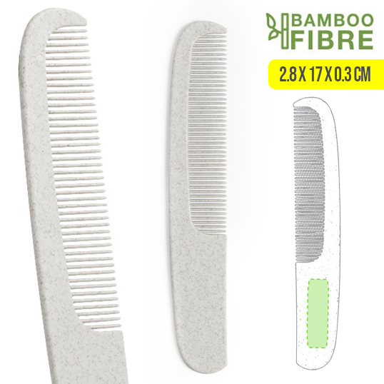 Peine de línea nature en caña de trigo, para así fomentar la utilización de materias primas naturales y reducir las emisiones contaminantes. Con amplia superficie de marcaje en mango.