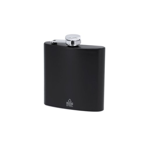 Petaca de 175 ml de capacidad con cuerpo de Acero Inox Reciclado y tapón de seguridad a rosca. De diseño ergonómico para guardar cómodamente en el bolsillo y cuerpo en acabado mate. Con distintivo de Acero Inox Reciclado.El acero es uno de los materiales más demandados y que puede encontrarse casi en todas partes, desde productos de uso diario a grandes construcciones. Con innumerables propiedades, entre las que cabe destacar la durabilidad y su alto grado de reutilización, convirtiéndolo en una alternativa muy valorada en soluciones de sostenibilidad. Debidamente tratado, permite obtener nuevos recursos de infinita utilización. 175 ml