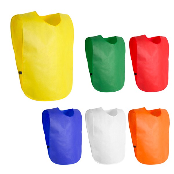 Peto deportivo para adulto en resistente non-woven de vivos colores y laterales rematados con elásticos. Talla única. Talla Única. Adulto