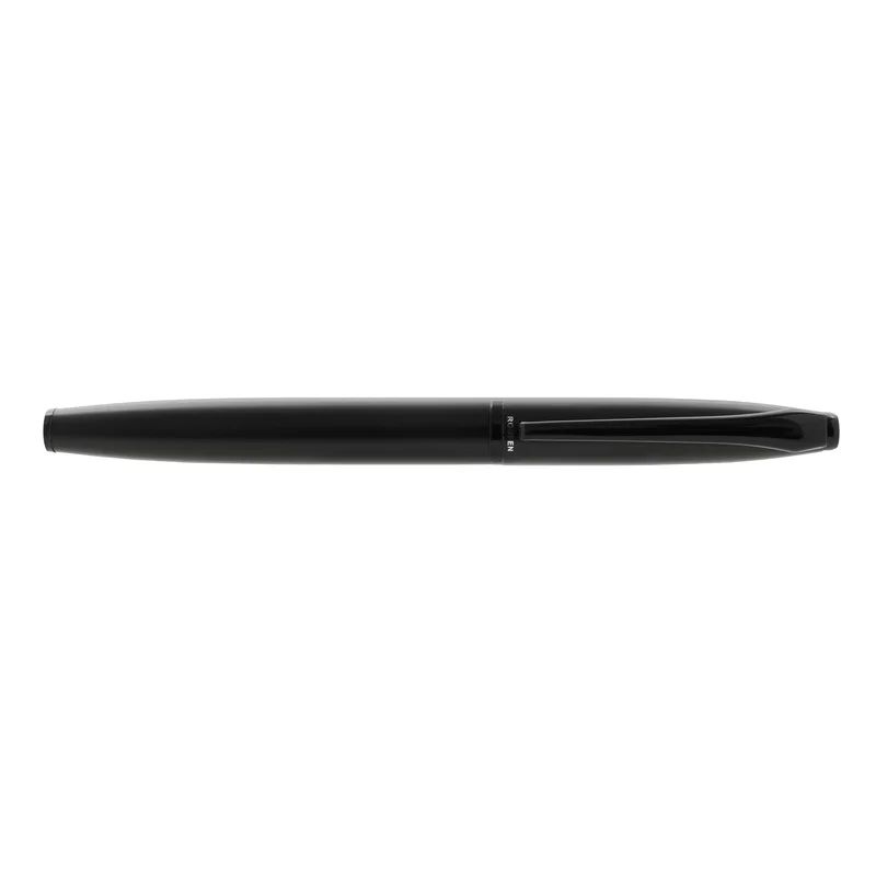 Lapiz roller de cuerpo metálico en acero con detalles en negro mate. Cuenta con tinta azul. Medidas: 13,6 x 1,25 cm. Roupen.