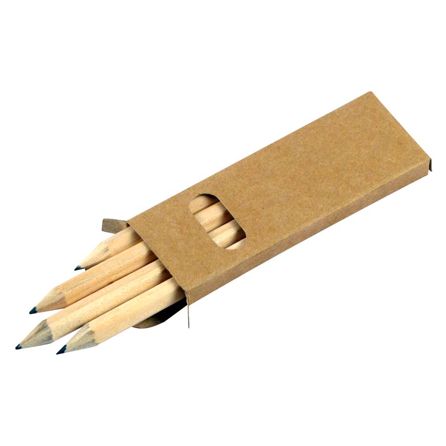 Set de 4 Lápices Grafito Negro hexagonales, en Estuche rectangular de Cartón reciclado con ventana.