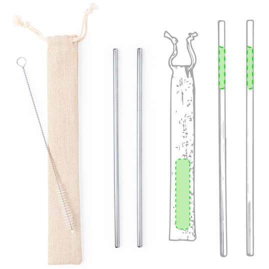 Set de 2 pajitas reutilizables en acero inoxidable. Con accesorio limpiador incluido y presentadas en bolsita de algodón natural con cuerdas autocierre. 2 Piezas. Reutilizable. Limpiador Incluido. Funda Algodón