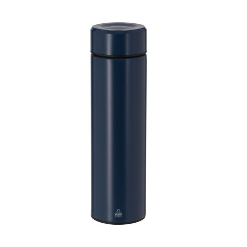 Termo en Acero Inox Reciclado de 450 ml de capacidad. Con doble pared para mejor y más duradera conservación de la temperatura e interior con recubrimiento de cerámica, apto para bebidas carbonatadas. Infusor incluido y sistema de apertura fácil a rosca. Con distintivo de Acero Inox Reciclado.El acero es uno de los materiales más demandados y que puede encontrarse casi en todas partes, desde productos de uso diario a grandes construcciones. Con innumerables propiedades, entre las que cabe destacar la durabilidad y su alto grado de reutilización, convirtiéndolo en una alternativa muy valorada en soluciones de sostenibilidad. Debidamente tratado, permite obtener nuevos recursos de infinita utilización. 450 ml. Infusor Incluido