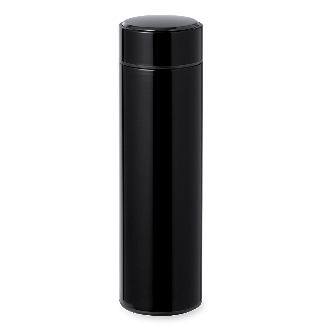 Termo en alta calidad de doble pared y 350 ml de capacidad, con medidor de temperatura táctil integrado en tapón. Fabricado en acero inox, que ofrece una resistencia y durabilidad excepcionales. Tapón en acero inox con infusor integrado y libre de BPA. Alimentación a pilas (de botón incluida), con manual de instrucciones en español e inglés. Disponible en variada gama de colores y presentado en atractiva caja de diseño kraft. 450 ml. Medidor Temperatura Táctil. Infusor Incluido. Pila Botón Incluida