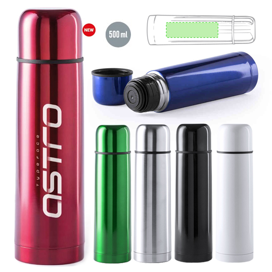Termo de acero inox de 500ml de capacidad en acabado brillante. Con tapón de seguridad/taza y presentado en atractiva caja de diseño. 500 ml