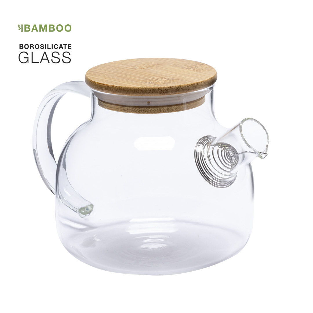 Tetera de línea nature en alta calidad y 1l de capacidad, con infusor incluido. Fabricada en cristal de borosilicato, que ofrece una resistencia y durabilidad excepcionales, alargando su vida útil y pudiendo ser reutilizada infinidad de veces. Tapa en bambú y presentado en atractiva caja de diseño eco. 1 L. Infusor Acero Inox Incluido