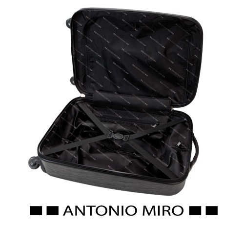 Trolley de Antonio Miró de 4 ruedas telescópicas en material ABS rígido de alta resistencia y elegante diseño de cuadros. Compartimento principal con cierre de cremallera de doble tirador y lateral con cierre de seguridad de combinación numérica. Con asa de mano de cómodo y suave tacto y logotipo de la marca en chapa exterior. Interior forrado, de doble compartimento con cintas elásticas de sujeción. Rígido. 4 Ruedas Giratorias