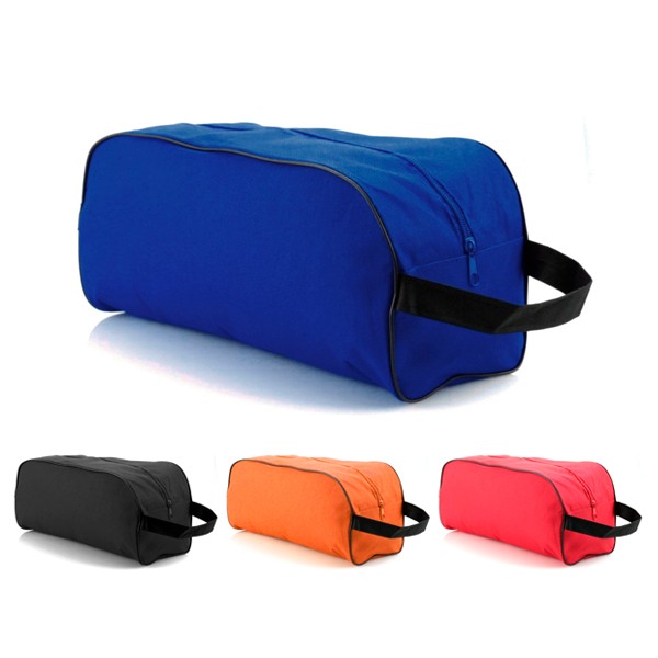 Zapatillero en resistente poliéster 600D en amplia gama de vivos colores. Con cremallera, ribete de refuerzo y cómoda asa de transporte en color negro.